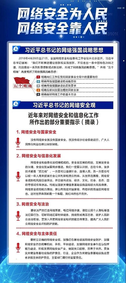 2021年國家網絡安全宣傳周于10月11日至17日舉辦,活動主題為“網絡安全為人民,網絡安全靠人民”。中國兵器工業集團有限公司與國家同步、同主題,于10月11日正式啟動2021年集團公司網絡安全宣傳周系列活動,旨在普及員工網絡安全知識,提升員工網絡安全防護技能,增強員工網絡安全意識,號召全體員工共同筑牢網絡安全防線,推動集團公司高質量發展。 本屆活動采用線上線下聯動方式,通過開展線下集中學習、網絡安全知識線上答題、網絡安全解決方案征集和網絡安全與信息化領域論文征集等多種方式廣泛宣傳教育。 活動在集團公司總部、在京單位集中辦公區等地設置宣傳展板,圖文并茂向廣大員工宣貫網絡安全相關知識,內容涵蓋了習近平總書記的網絡強國戰略思想及重要指示,以及網絡安全法的特點和亮點、數據安全的相關知識,營造網絡安全宣傳的濃厚氛圍。 |