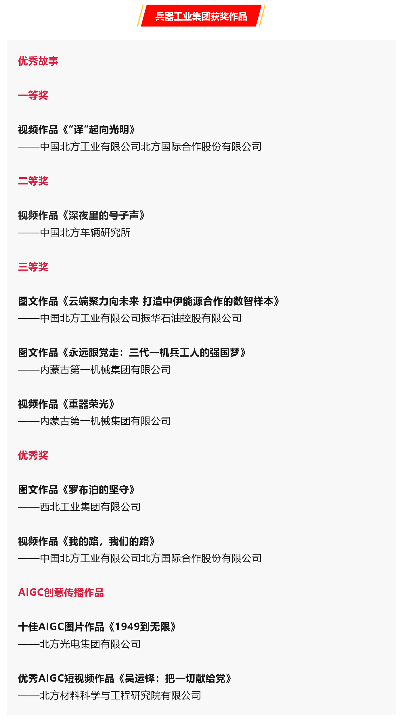 兵器工業集團9件作品在第七屆中央企業優秀故事暨AIGC創意傳播作品發布展示活動中獲獎